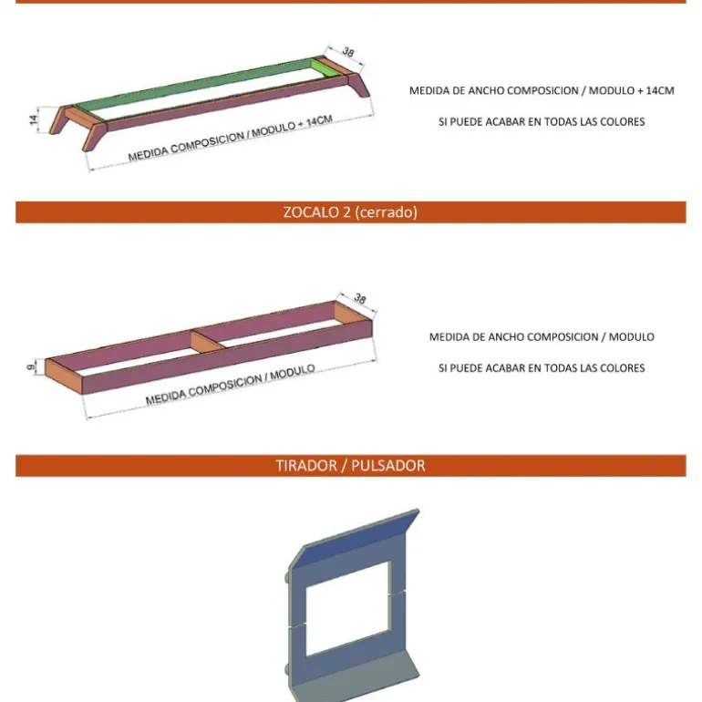 • Es posible sustituir el zócalo (9cm) por patas de madera (14cm). El coste es el mismo.