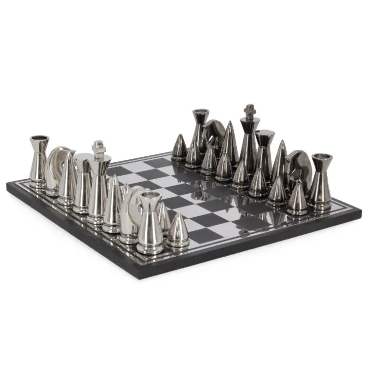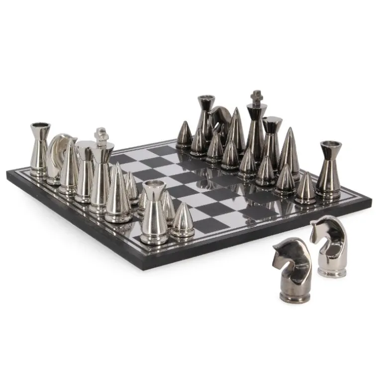 Ajedrez decorativo metálico de lujo. Fabricado en metal y madera, de un exquisito gusto y diseño de lujo.