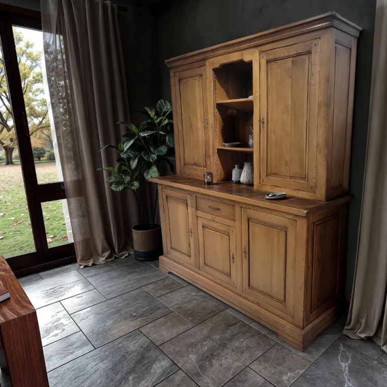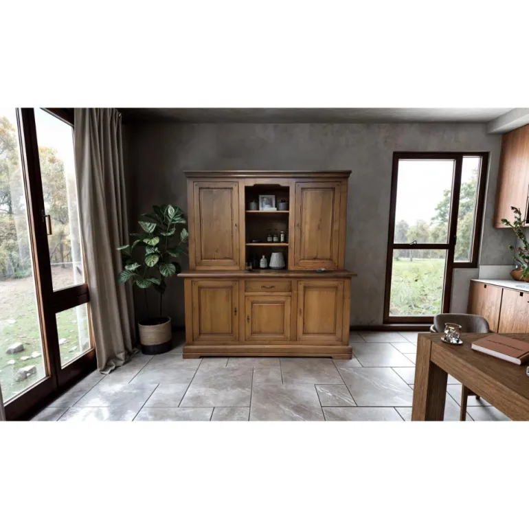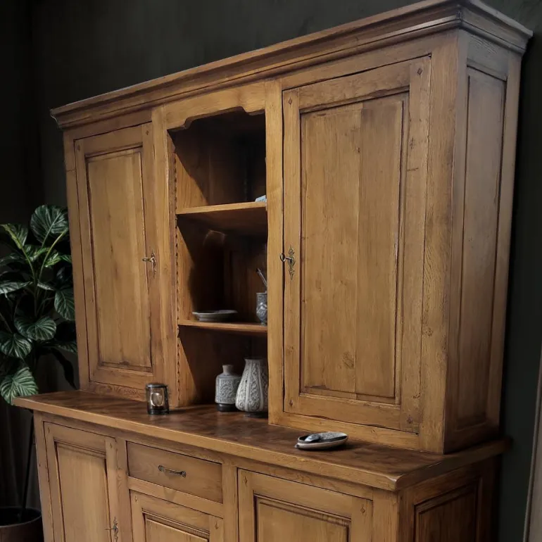 Esta alacena de estilo rústico será el aliado perfecto para mantener el orden en tu cocina o comedor. Con figurada por aparador + alzada de roble macizo 100%