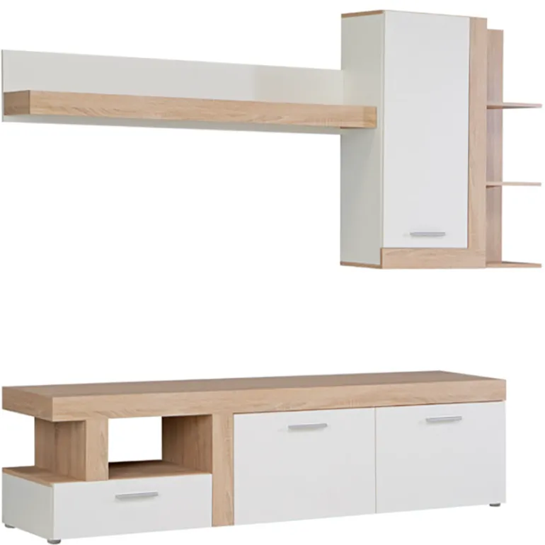 ¡Ha llegado una colección moderna de muebles de estilo natural! La combinación del acabado Roble con nudos con un negro intenso llama la atención de los entusiastas de los interiores elegantes. El mobiliario está equipado con tiradores de metal negro, y la mesa de centro en mismos tonos, lo que además le da al interior un carácter tipo