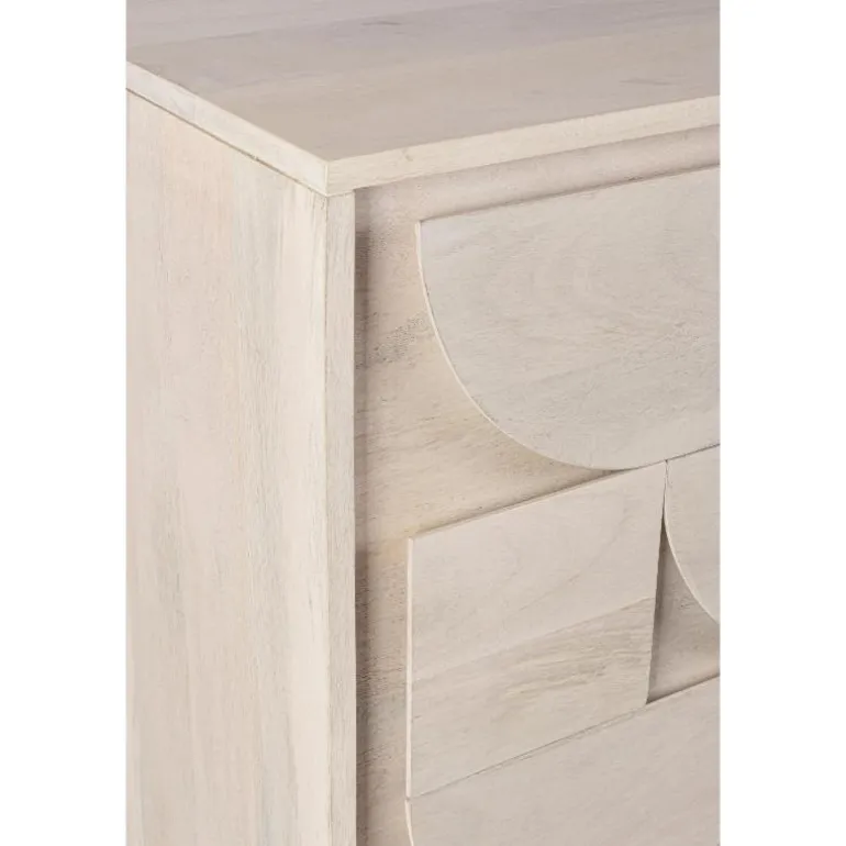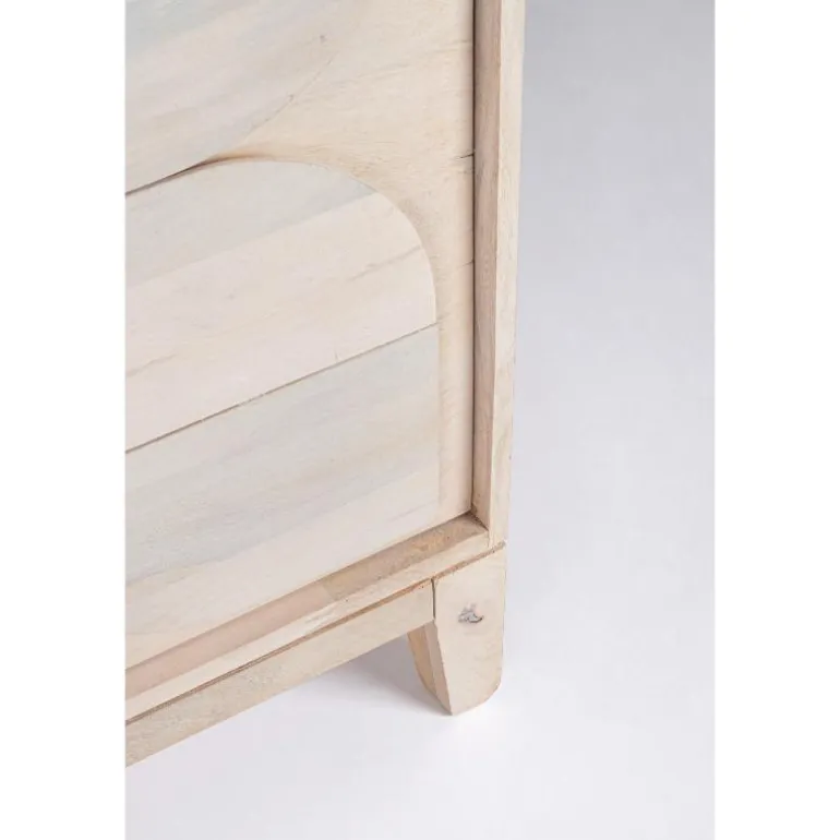 Estructura y patas de madera de mango maciza. acabado decapado blanco. Incluye un estante interior.