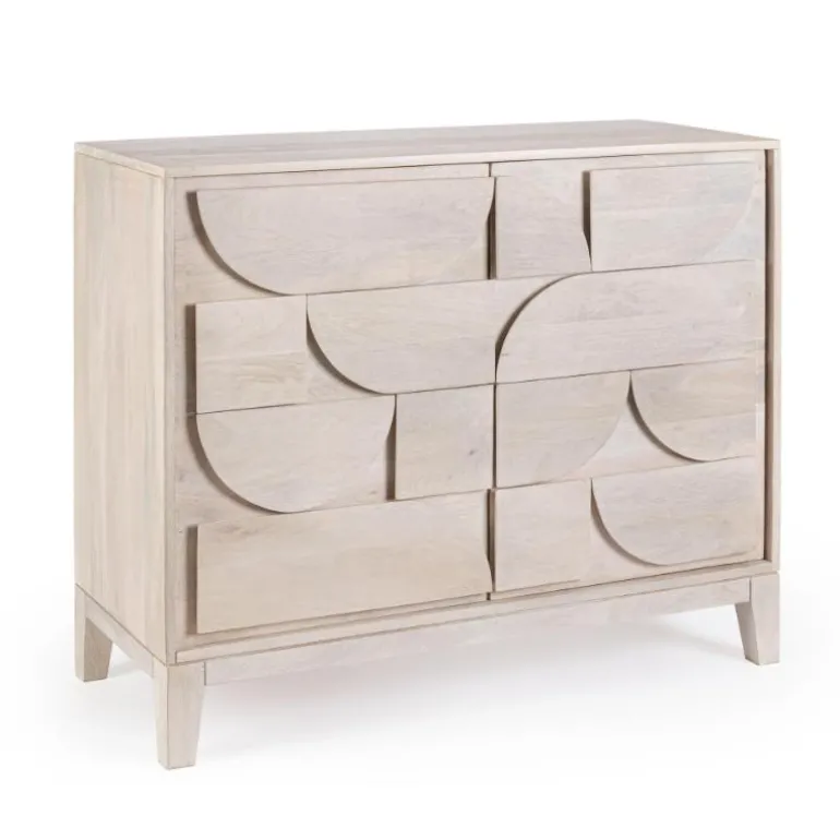Madera maciza tratada. Tratamiento especial de la madera, desgastamos la veta blanda para que el relieve sea mayor apreciable a la vista y al tacto, y relieves tallados en madera. Mix entre lo antiguo y lavanguardia del mobiliario.