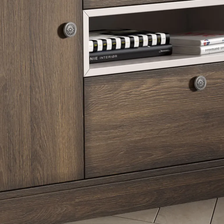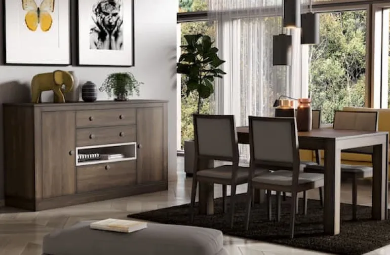 •Aparador fabricado en chapa de roble natural teñida, con opción de poro abierto para poder sentir y ver el relieve de la veta.