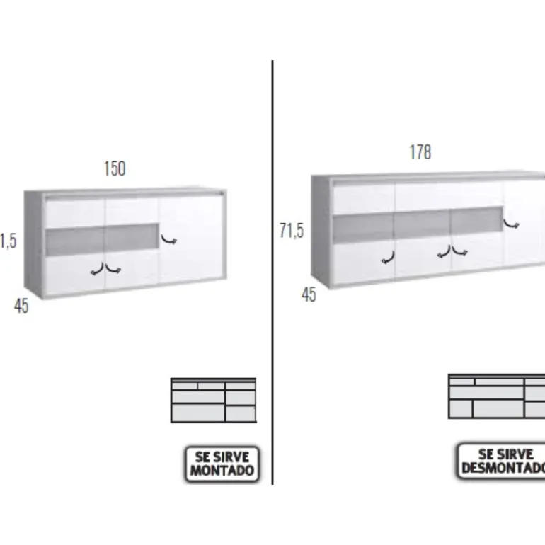 ✓Medidas:178/150*45*71,5 cm + 15 cm pata metálica (150cm de largo con 3 puertas)