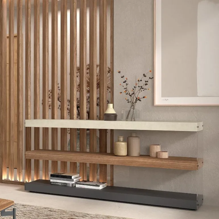 - Aparador metacrilato Dormi, con baldas de 8cm de grosor y laterales de metacrilato. Moderna estantería / aparador para el salón o comedor que destaca por sus baldas de 8cm de grosor a poder escoger en diferentes colores y acabados cada balda, y por los laterales de metacrilato que las sujetan. Diferente a la mayoría de muebles que podemos ver, vanguardista, recto muy elegante. Compuesto por 3 baldas y Acabados ecomadera Nogal Tierra, Caliza Claro y Gris Pizarra. Todo ello con patas niveladoras de 2 cm. color Grafito. ESTANTES de 8 cm. de GRUESO. Incluyen niveladores de 2cm. de serie (No se admiten otros tipos de apoyos).Dispone de 3 baldas, y cada Hueco tiene una altura útil de 28 cm. Dispone de 3 metacrilatos que lo soportan. Dos a ambos lados y uno en la trasera para mayor sujeción. Mueble moderno en diferentes tonos de Roble, lacado blanco mate, piedra o mármol blanco o negro y otros acabados especiales.