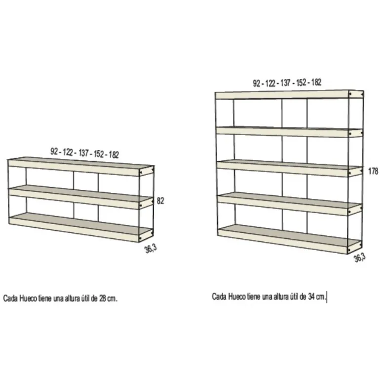 - ✓ Medidas: 82 cm. alto (3 baldas) x 36,3cm de fondo (Disponible con 5 baldas).