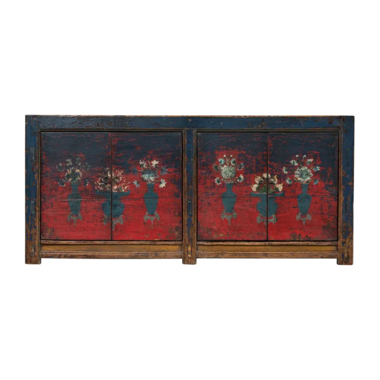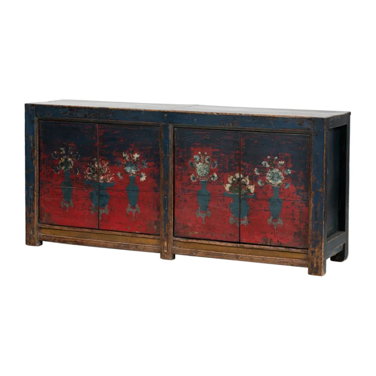 Espectacular aparador estilo tradicional de la provincia de Qinghai, en el Norte de China. De 100 años de antigüedad. Aparador tradicional de manera artesanal. Es una pieza única.