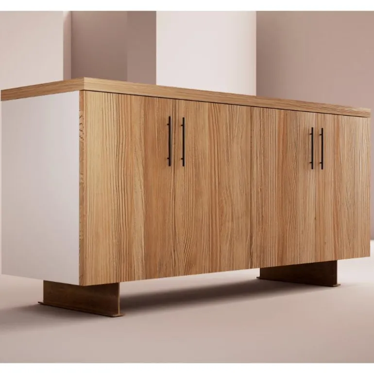 Aparador Pino Insignis, parador de fabricación artesanal, con opción de acabado en una de nuestras maderas seleccionadas del muestrario, o en lacado Blanco o lacado Antracita. Y hierro en los colores del muestrario.