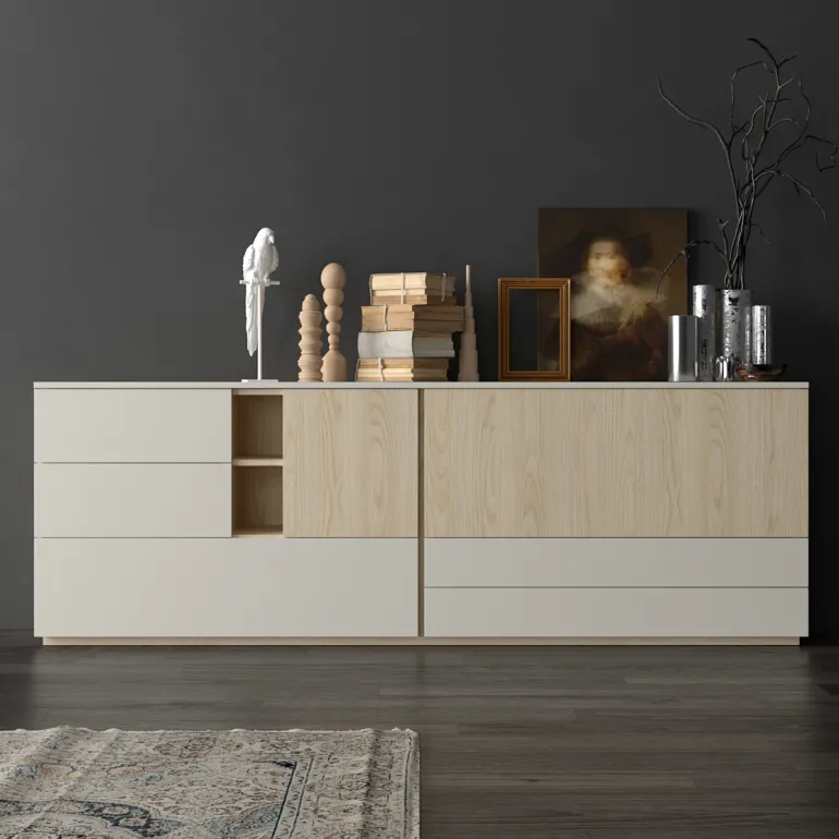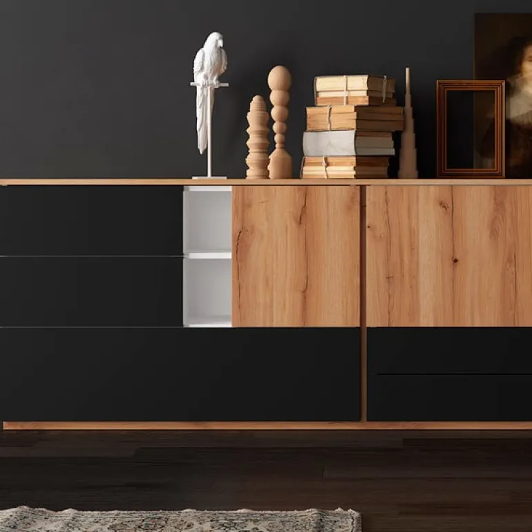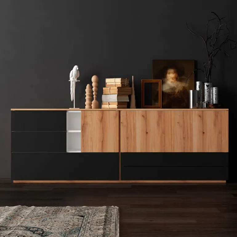 En acabadosRoble crack, carbón, blanco mate. Puedes elegir otras combinaciones entre toda nuestra gama de acabados. En diferentes acabados melamínicos en maderas o laminados lisos.