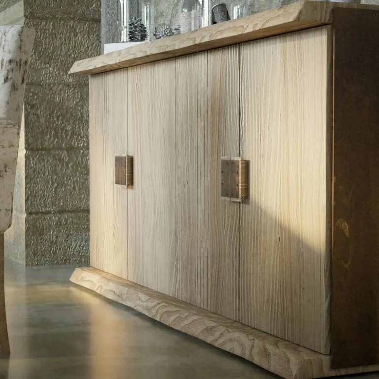 Madera maciza tratada, Abeto nacional de tala en bosques sostenibles. Tratamiento especial de la madera, desgastamos la veta blanda para que el relieve sea mayor, apreciable a la vista y al tacto. Mix entre lo antiguo y lavanguardia del mobiliario.