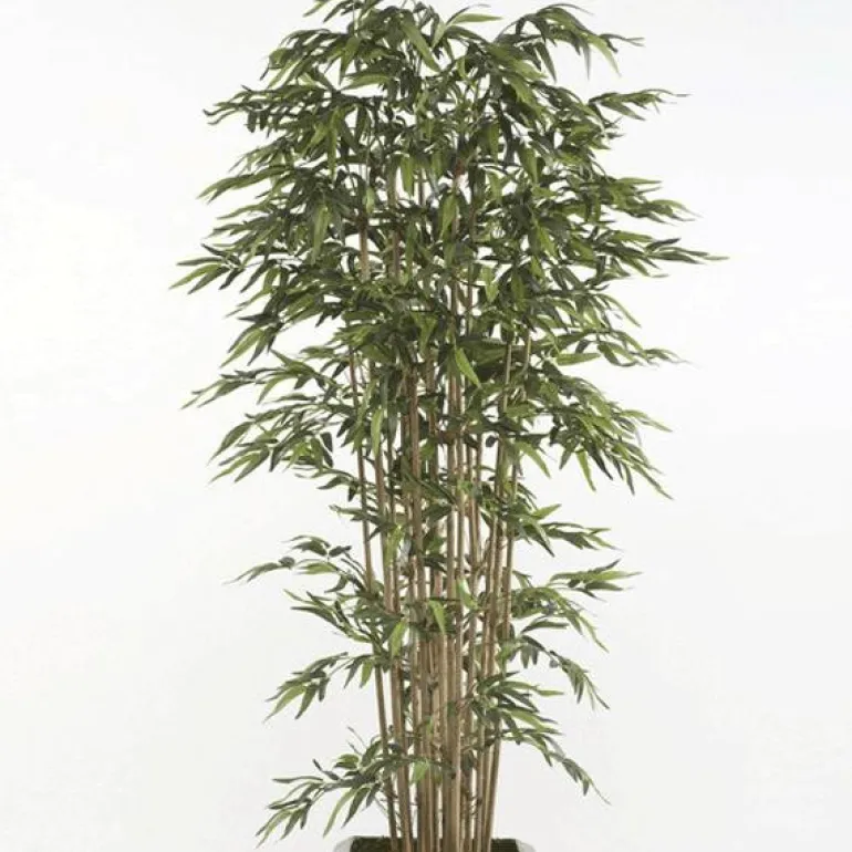 Réplica de Árbol de bambú acabado PREMIUM, precioso árbol de alto realismo, con un excelente acabado de hojas en tono oscuro y cañas naturales. Se entrega con macetero básico incluido y no requiere mantenimiento.
