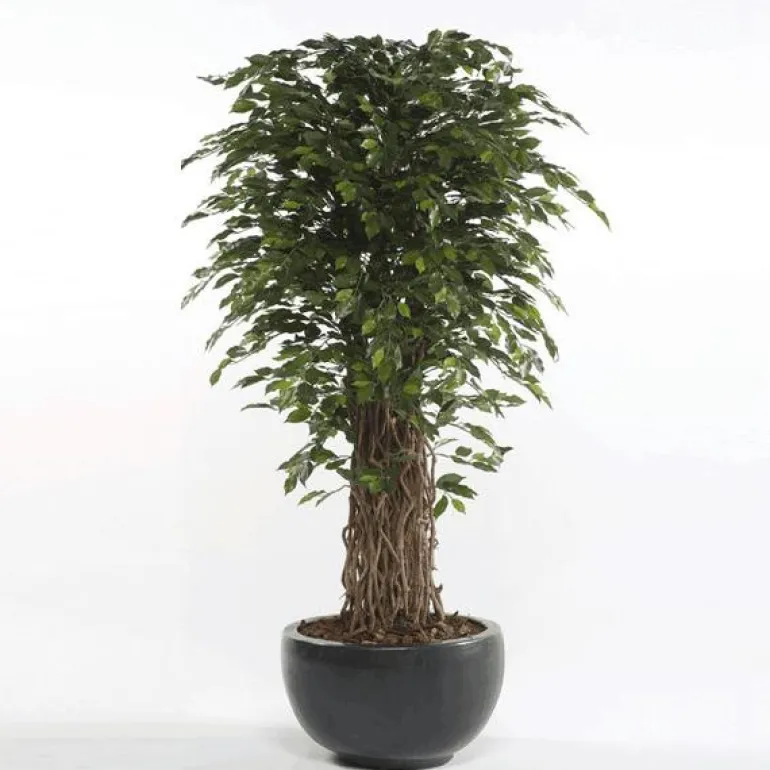 Réplica de Árbol ficus acabado DELUXE, el más deseado y admirado, con multitronco natural y alta frondosidad de hojas enteladas, este acabado proporciona una estética espectacular y alto realismo. Se entrega con macetero básico incluido y no requiere mantenimiento.