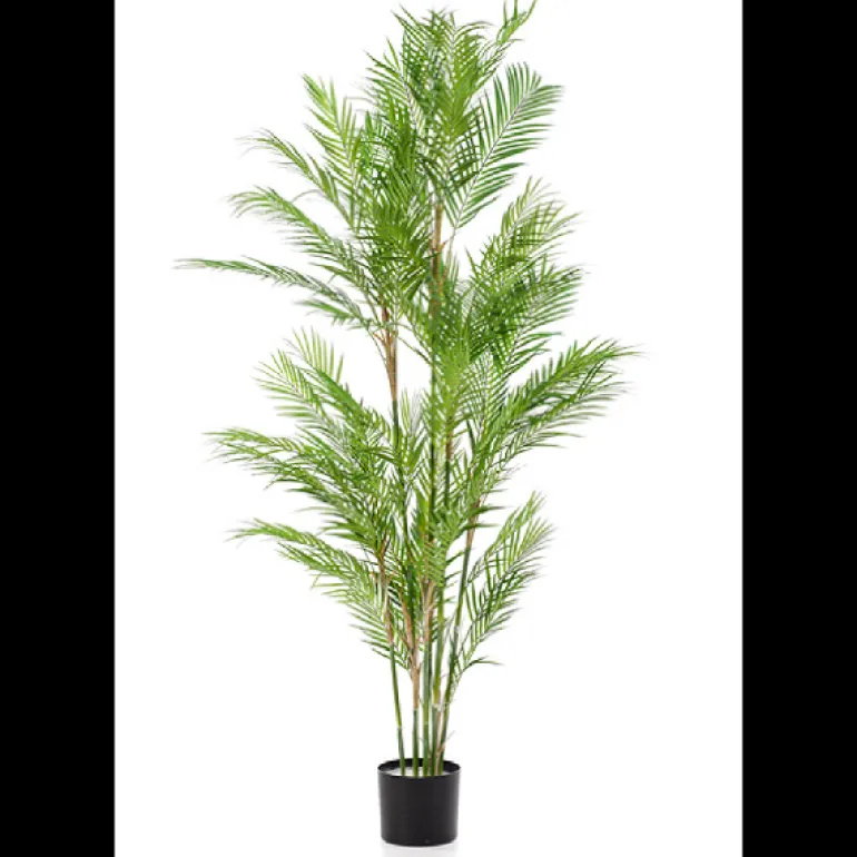 Réplica de Árbol palmera modelo Style. Toda la elegancia y realismo que puede tener una palmera artificial y que cuida todos los detalles de acabado imaginables. Se entrega con macetero básico incluido y no requiere mantenimiento.