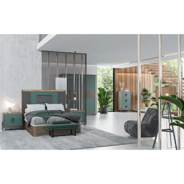 Disponible en la web ésta composición completa de dormitorio de matrimonio para conseguir un dormitorio uniforme y elegante.