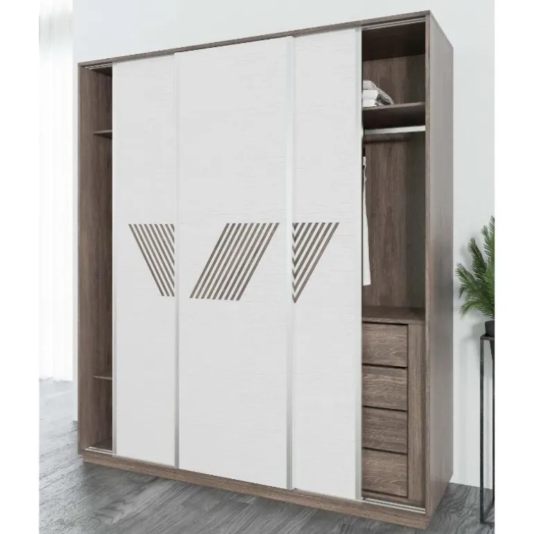Incluye una cajonera con 4 cajones amplios, con tiradores uñeros. 3 barras de colgar y 5 baldas.