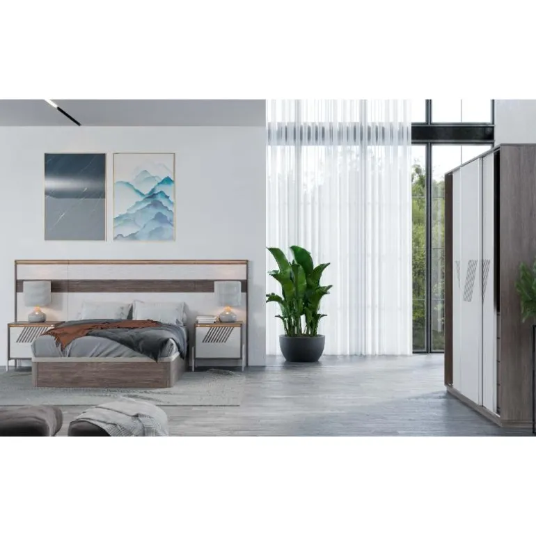 Disponible en la web ésta composición completa de dormitorio de matrimonio para conseguir un dormitorio uniforme y elegante.