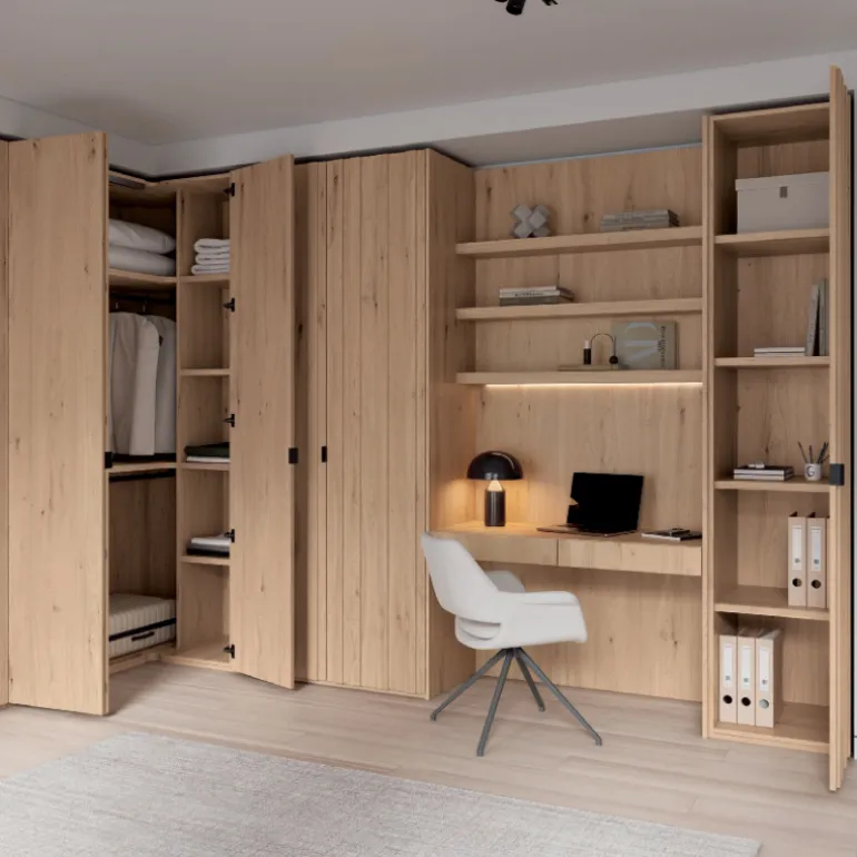 A través del juego de medidas, formas, colores y tiradores podemos crear el armario ideal, adaptado al espacio y las necesidades de cada habitación. Abre las puertas a un mundo lleno de posibilidades.