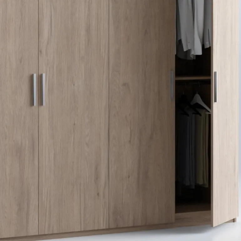 Armario Denver moderno con puertas batientes para dormitorio de matrimonio, fabricado en ecomadera con posibilidad de personalizar entre los acabados disponibles. Con una capacidad de almacenaje impresionante, hacen de este conjunto una opción muy recomendable para guardar toda la ropa.