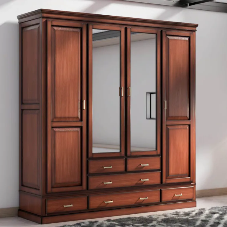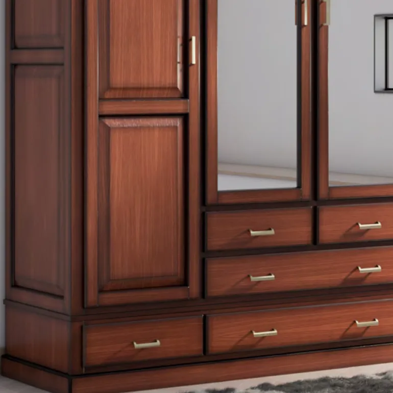 Armario con 4 puertas, dos con espejo, y6 cajones bajos. Perfecto para dormitorio de matrimonio, en chapa de Roble natural N3-S, que le otorga un contraste muy elegante,moderno y ligero.