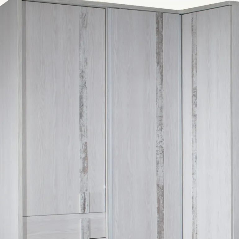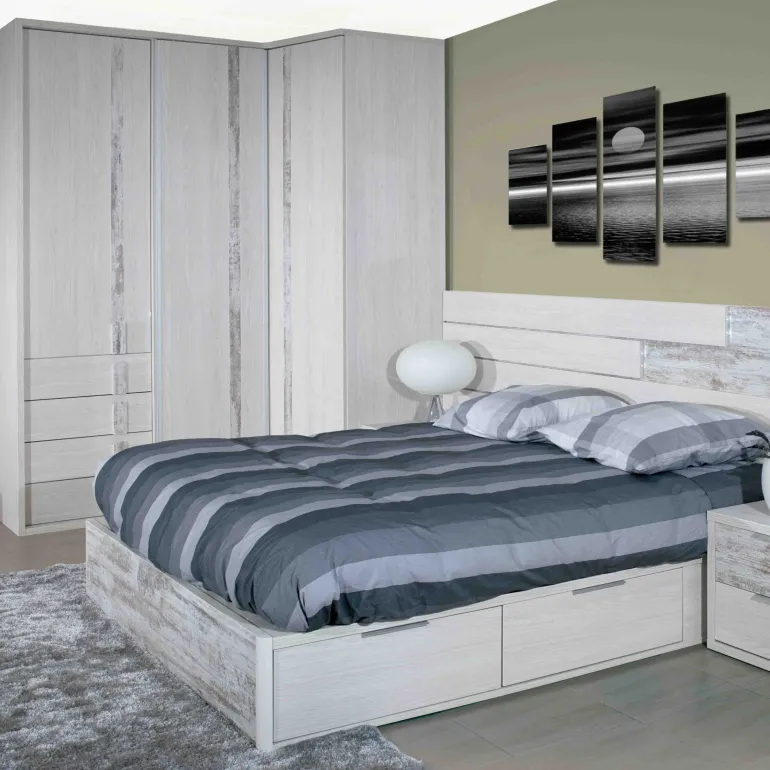 Armario ideal para dormitorio de matrimonio de estética muy actual, formado por3 puertasbatientes y 4 cajones,en ecomadera roble y detalle fantasía en madera, contiradores finos en vertical.