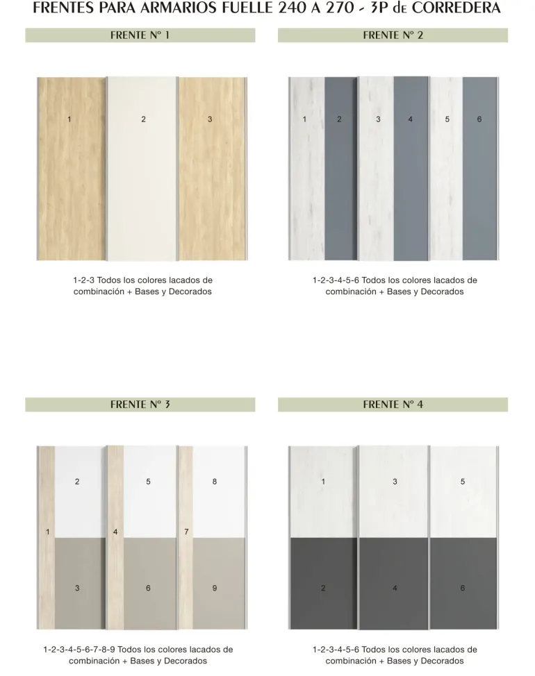 Armario puertas correderas Nogal, puedes elegir colores de la madera, colores de la laca, e incluso si quieres cristal lacado. Puedes elegir el número de puertas, claro.