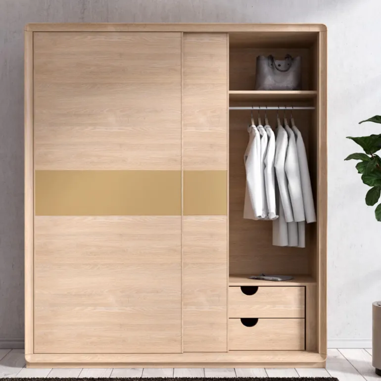 Armario con2 puertas correderas. Perfecto para dormitorio de matrimonio, Lacado blanco con una franja central en chapa de Roble N20 con nudos, que le otorga un contraste muy elegante,moderno y ligero.