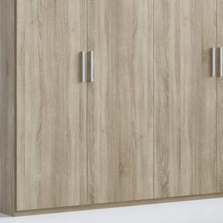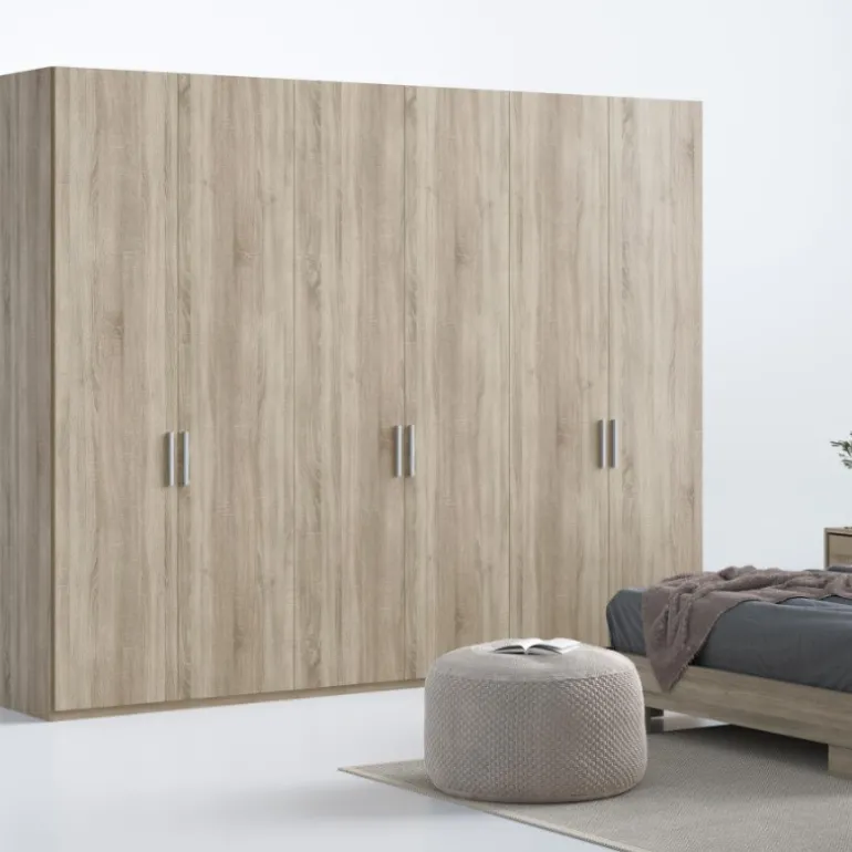 Armario Vida moderno con puertas batientes para dormitorio de matrimonio, fabricado en ecomadera con posibilidad de personalizar entre los acabados disponibles. Con una capacidad de almacenaje impresionante, hacen de este conjunto una opción muy recomendable para guardar toda la ropa.