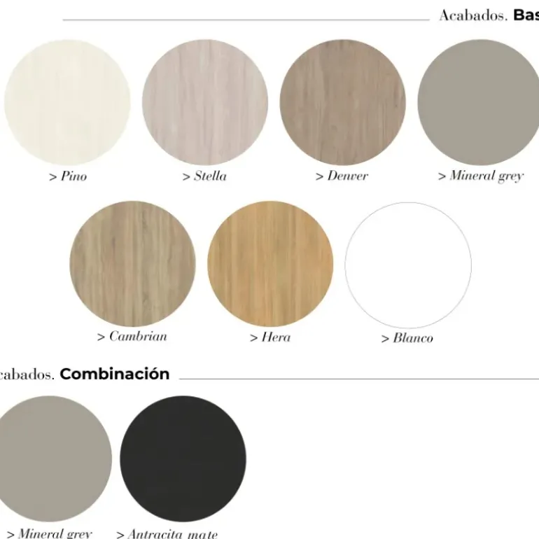 | Acabado | Blanco, Denver, Hera, Mineral Grey, Pino, Stella, Cambrian |