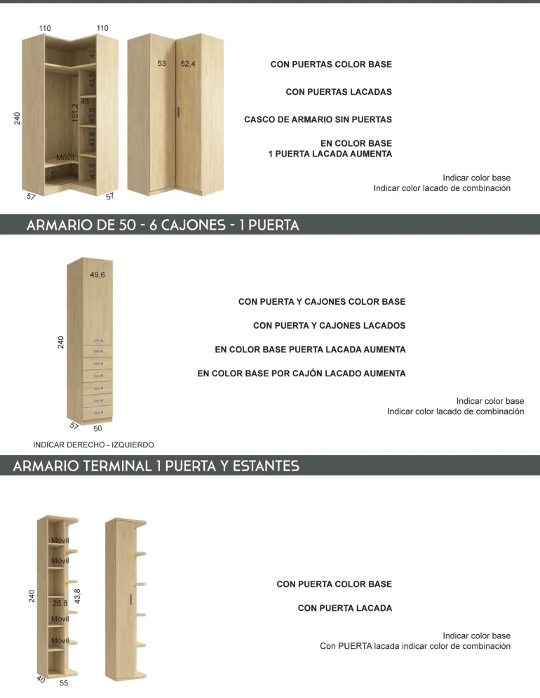 Averigua como poder hacerte el armario ideal a tu medida y forma, recto, esquinero, en diferentes puertas y acabados, descargarte el catálogo aquí: CATÁLOGO PDF
