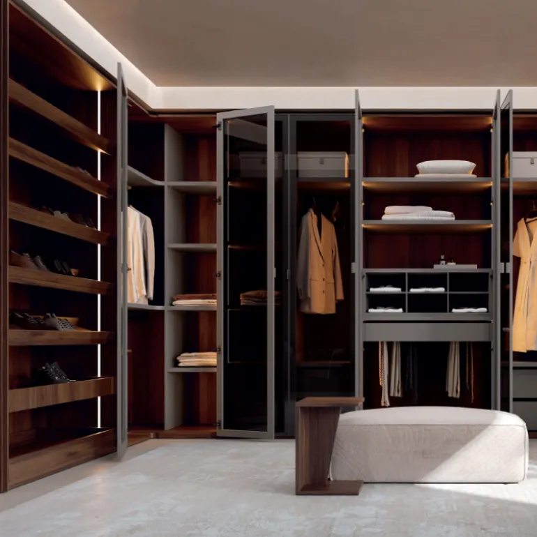Con o sin puertas, el vestidor se convierte en el espacio por excelencia hecho a medida. La gran variedad de opciones y accesorios de la colección construyen propuestas que priorizan la organización y la accesibilidad.