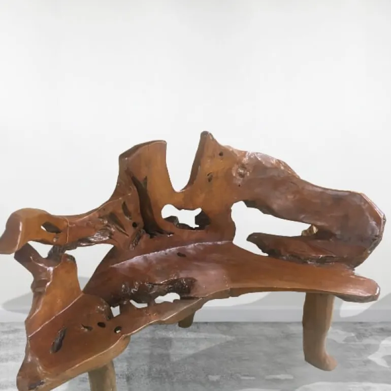 Banco decorativo o completamente funcional, según tus necesidades, fabricadocon trozos naturales de teca maciza, barnizada natural con patina para resaltar cada talla artesanal. Ideal para cualquier tipo de decoración, quedará bien