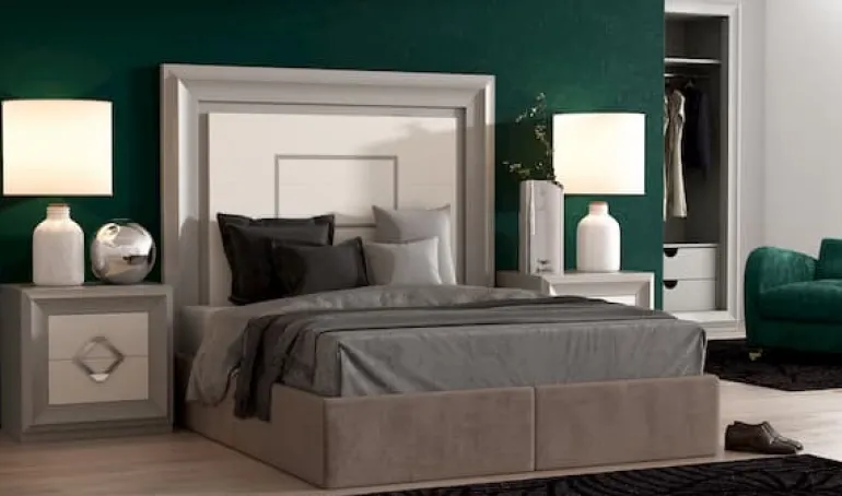 Disponible en la web ésta composición completa de dormitorio de matrimonio para conseguir un dormitorio uniforme y elegante.