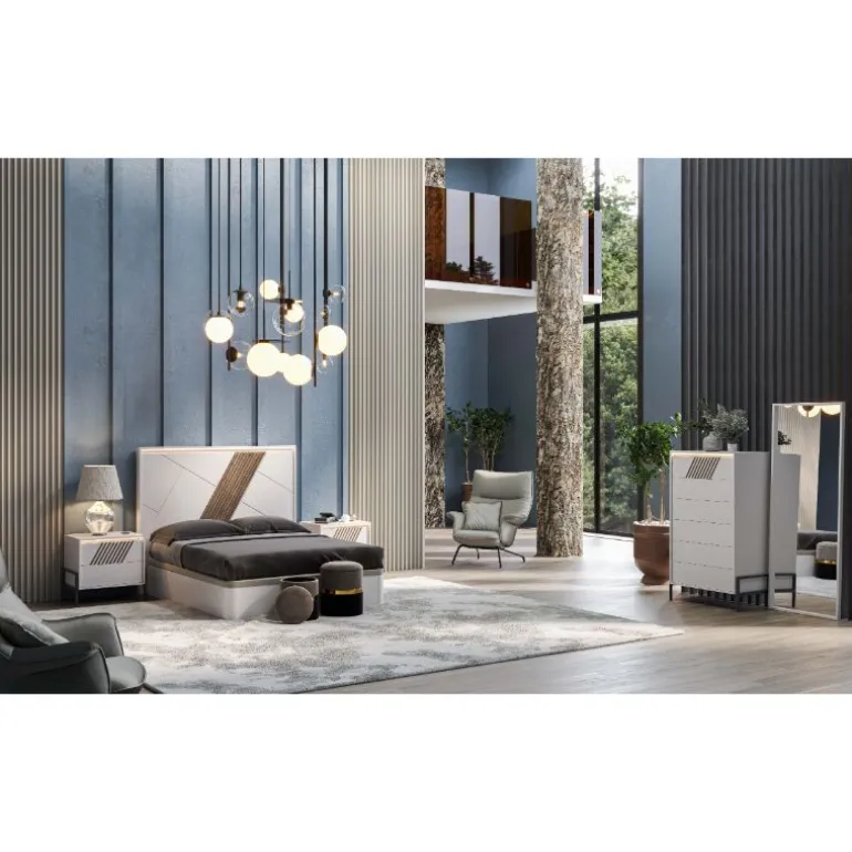 Disponible en la web ésta composición completa de dormitorio de matrimonio para conseguir un dormitorio uniforme y elegante.