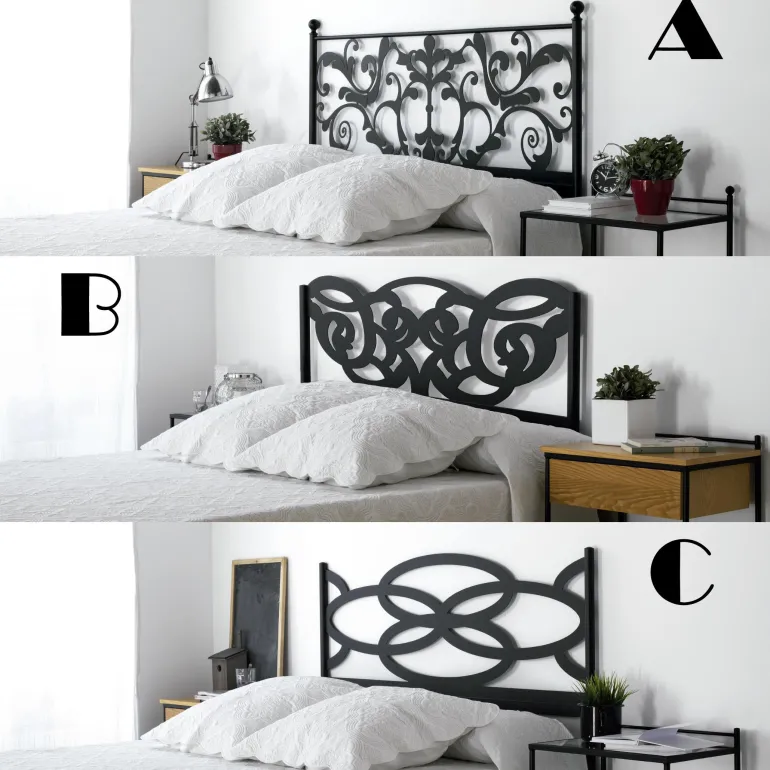Cabezal de cama de matrimonio o juvenil, fabricado en hierro forjado,mezcla de diseño vanguardista y de estilo clásico.