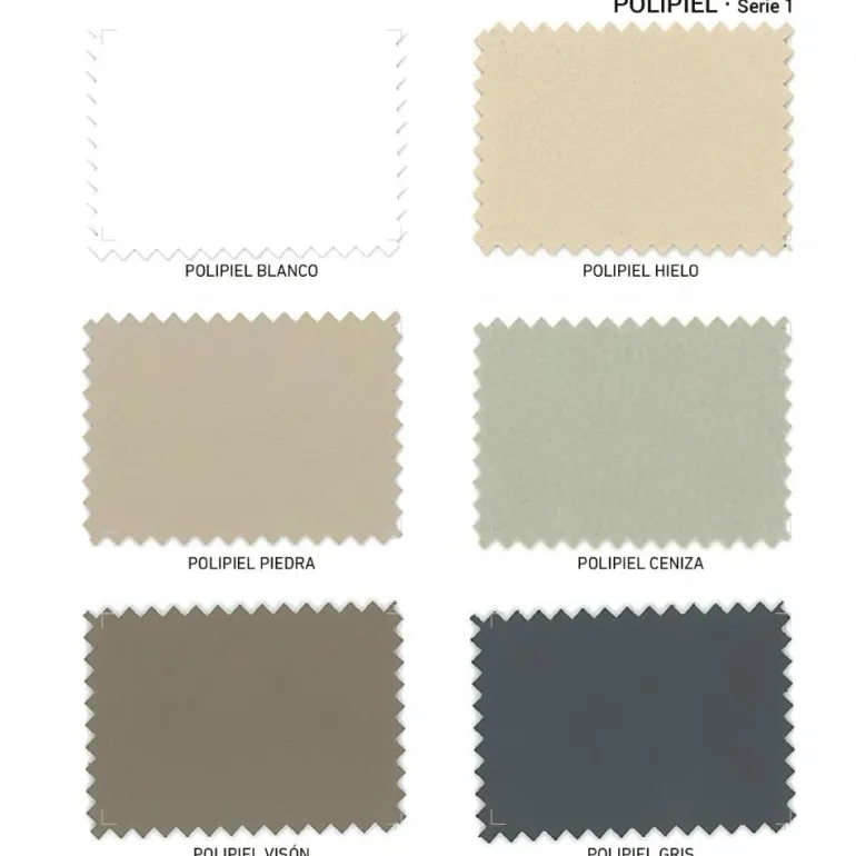 | Tapizado | DENVER 01, DENVER 02, DENVER 03, DENVER 09, DENVER 13, DENVER 14, DENVER 15, DENVER 17, DENVER 19, DENVER 21, Polipiel BLANCO, Polipiel CENIZA, Polipiel CHOCOLATE, Polipiel GRIS, Polipiel HIELO, Polipiel NEGRO, Polipiel PIEDRA, Polipiel PLATA, Polipiel TAUPE, Polipiel VISÓN |
