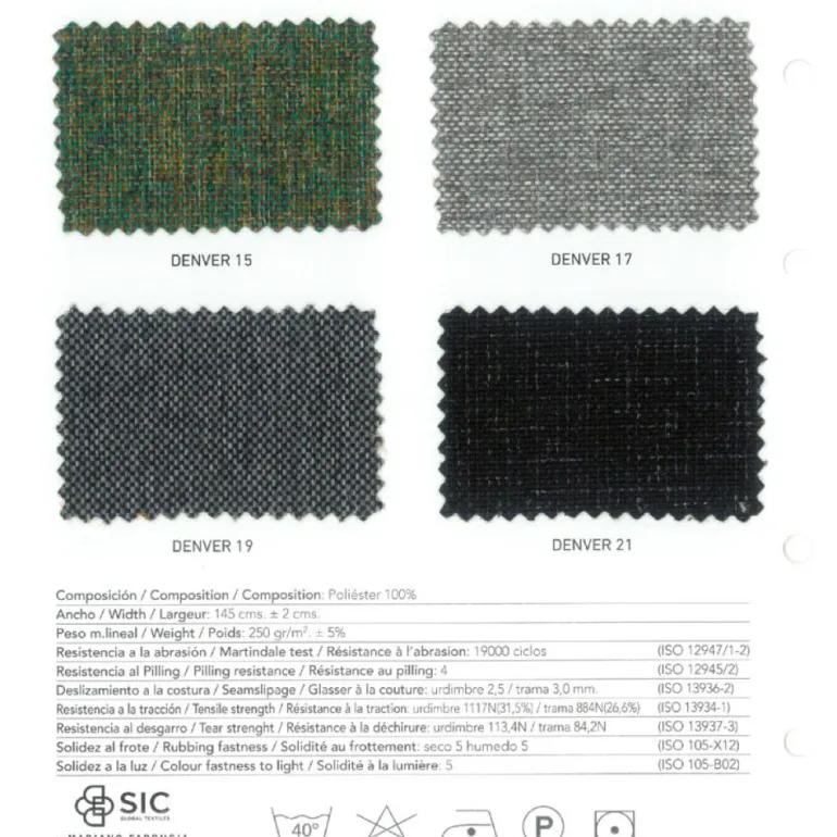 | Tapizado | DENVER 01, DENVER 02, DENVER 03, DENVER 09, DENVER 13, DENVER 14, DENVER 15, DENVER 17, DENVER 19, DENVER 21, Polipiel BLANCO, Polipiel CENIZA, Polipiel CHOCOLATE, Polipiel GRIS, Polipiel HIELO, Polipiel NEGRO, Polipiel PIEDRA, Polipiel PLATA, Polipiel TAUPE, Polipiel VISÓN |