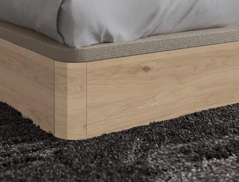 •Canapé elevablefabricado en acabadoLacado, con opción de chapa de roble natural, oacabado a poro abierto para poder sentir y ver el relieve de la veta.