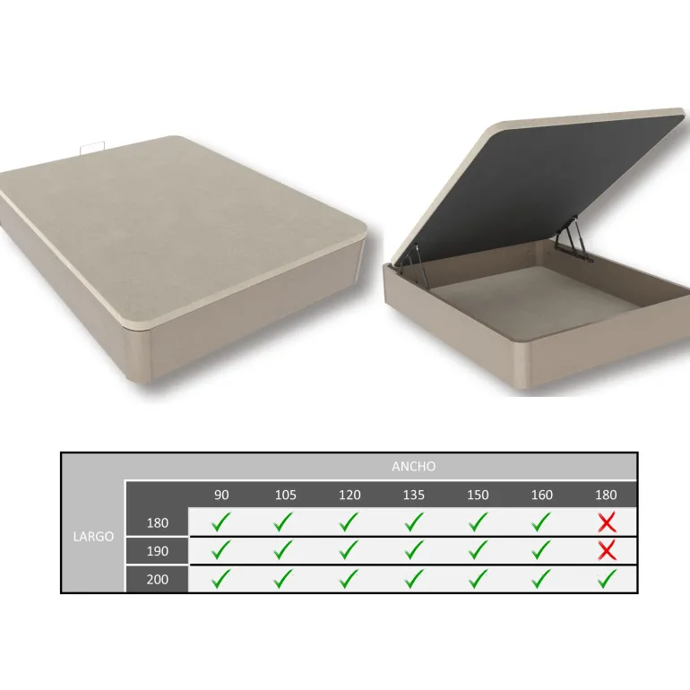 ✓Medidas:180/190/200*90/105/120/135/150/160/180cm. *35 cm. de altura (Altura interior disponible 27 cm.)