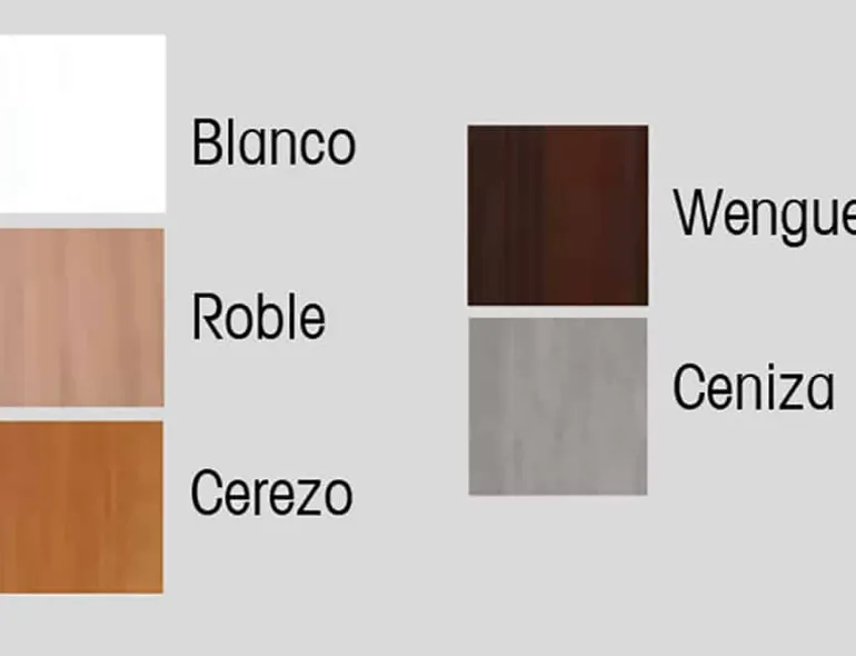 | Color | Blanco, Ceniza, cerezo, Roble, wengué |