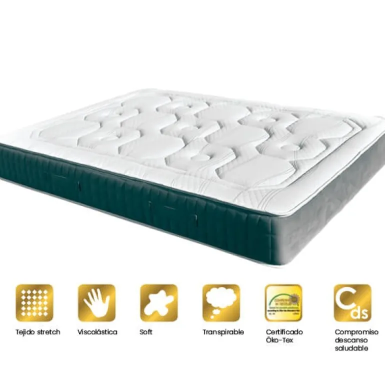 Colchón HR de dos caras con Memory Soft y núcleo HR. Fabricado con: Tejido strech es un material compuesto por una tela con punto entrelazado de fibras muy elásticas que destaca por su gran confort. Memory soft 15mm es una capa de espuma especial con memoria que se utiliza para suavizar la superficie. Capa hipoalergénica, tejido de gran adaptabilidad y protector contra la humedad ambienta. Tejido TNT es un tejido de alta resistencia que soporta el cambio de temperatura y la humedad. Núcleo 170 mm de gramaje 23kg, es un núcleo de colchón de alta resistencia y durabilidad, que confiere cuerpo al colchón.