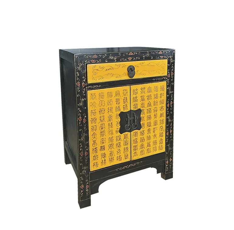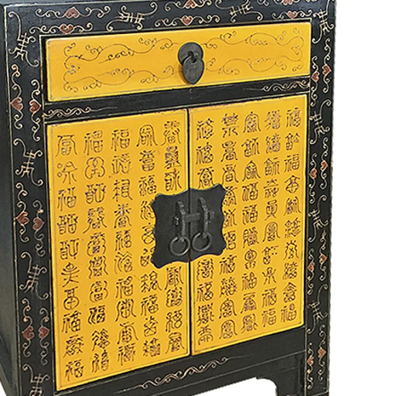Está pintado a mano en tonos amarillos y negro de forma artesanal, con escritura china. Fabricado completamente a mano.