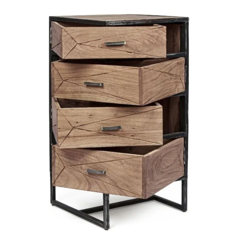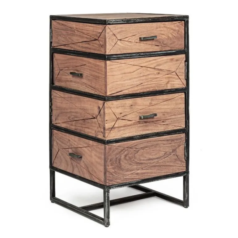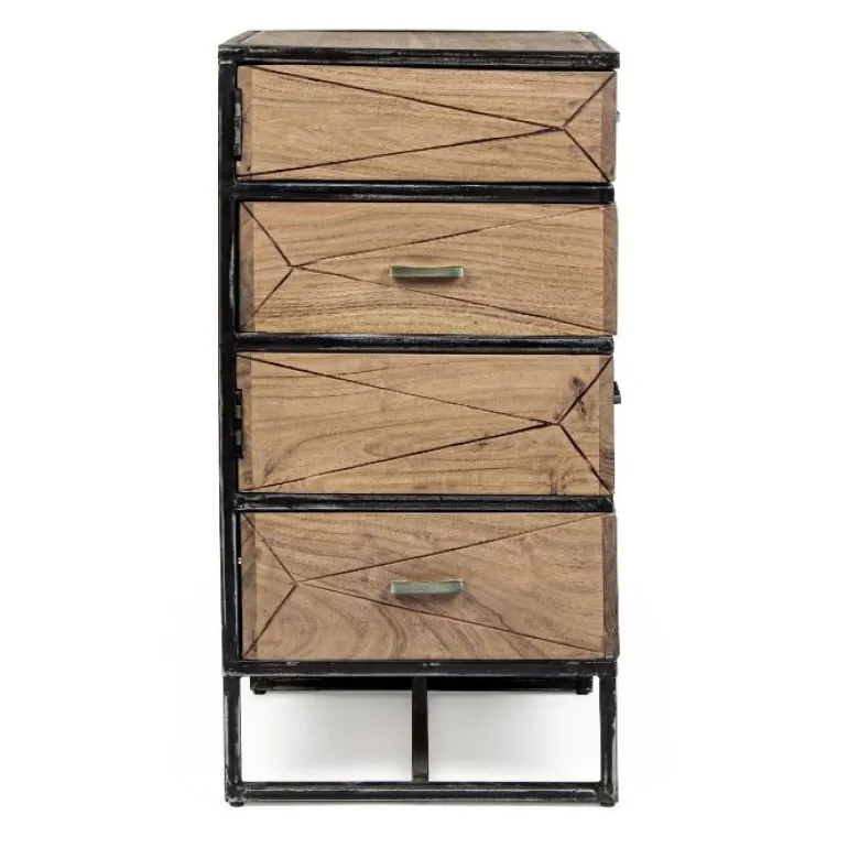 Estructura de madera de acacia y acero con revestimiento en polvo epoxi, partetrasera de madera contrachapada. Manillas de acero.