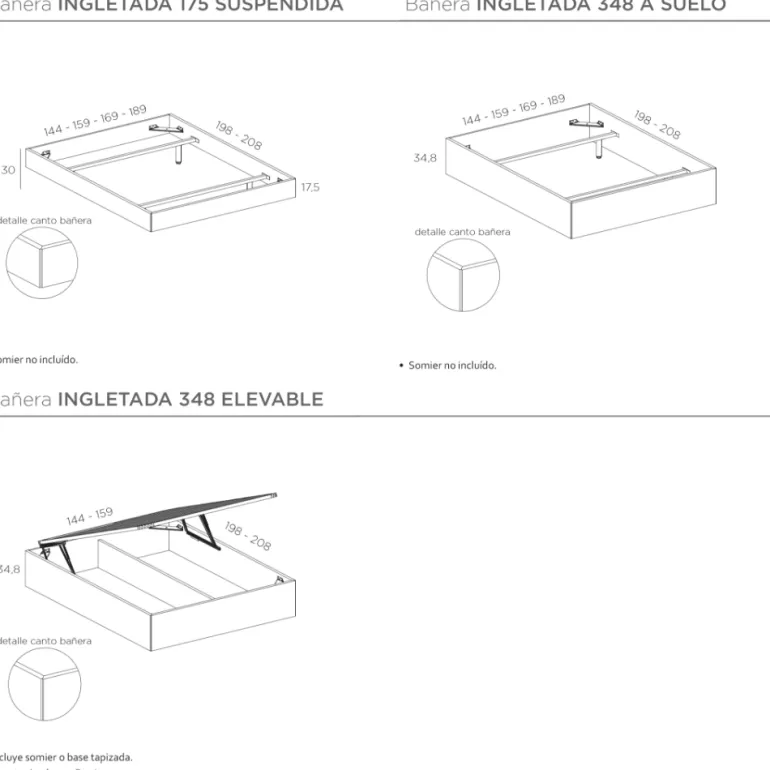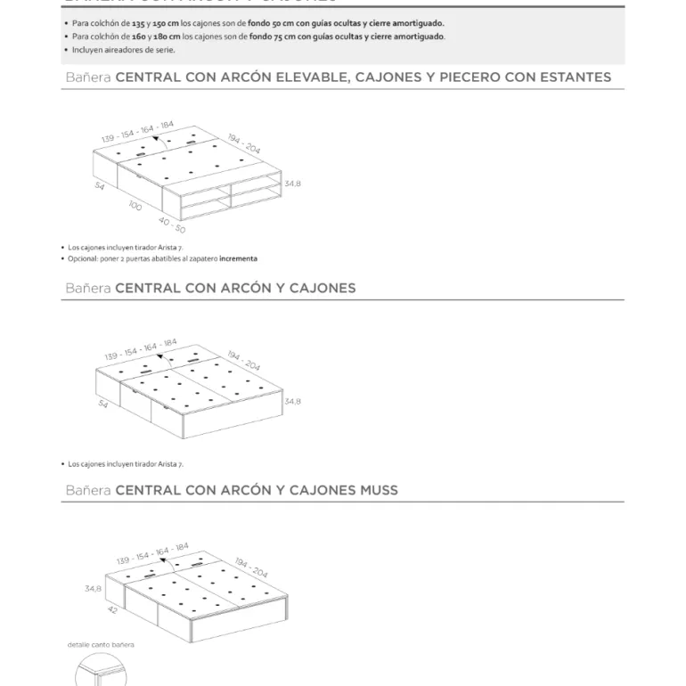 ✓ Bañera recta volada: 150*42*190 cm. (También disponible para cama de 160 y 135)