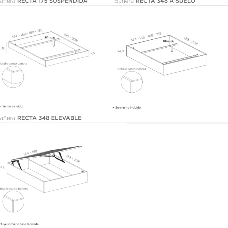 ✓ Bañera estructura metálica: 159*198*30 cm. (para cama de 150*190)