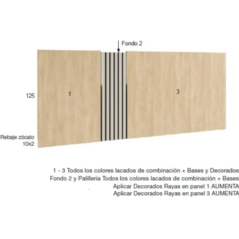En fotografía está en acabado Basalto y Lacablan, que combina fácilmente con cualquier otro tono, con detalle alistonado central asimétrico, pudiendo escoger los colores que usted prefiera.