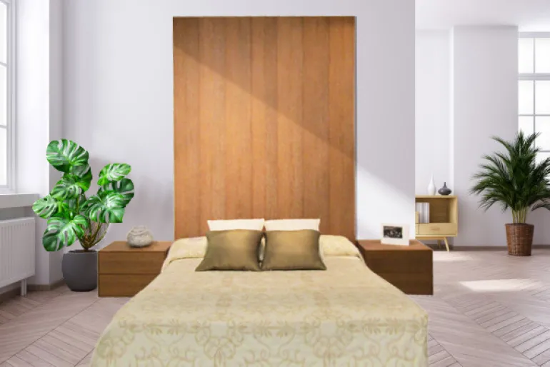 Dormitorio con un atmósfera especial, que te invita al descanso y la relajación gracias a la madera de roble que aporta una calidez que pocos materiales pueden dar.