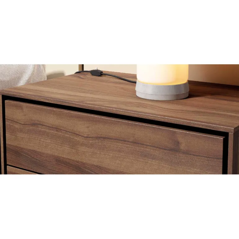 Está fabricado en ecomadera e incluye sistema de retención en sus cajones, para evitar golpes y prolongar la vida útil del cajón. Con un bonito cabezal en el que se combinan diferentes acabados y 2 mesillas con2 cajones.