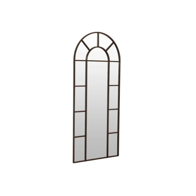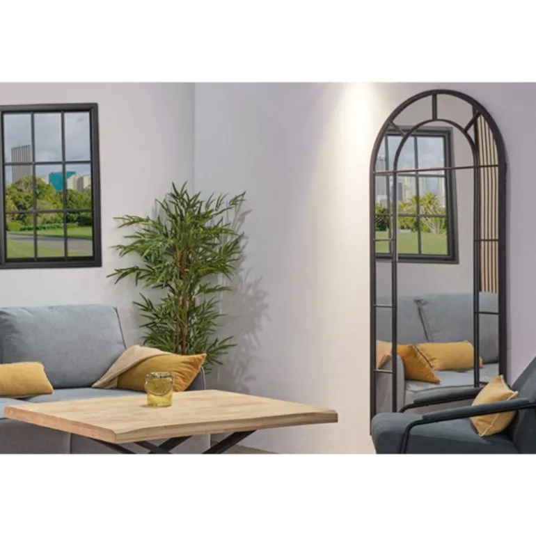 Espejo rectangular tipo ventana con arco, fabricado con estructura metálica color negro. Para Montaje vertical