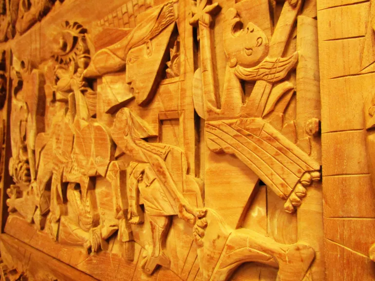 Exclusiva pieza de decoracióntallada a mano enmadera de teca.