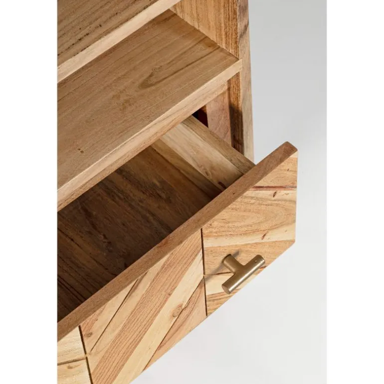 Estructura de madera de acacia, parte trasera e interiores de los cajones de contrachapado, acabado a base de barniz de poliuretano. patas de acero barnizado a polvo epoxy.